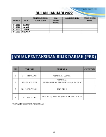 JADUAL PENTAKSIRAN BILIK DARJAH (PBD)