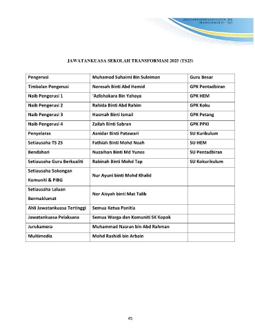 JAWATANKUASA SEKOLAH TRANSFORMASI 2025 (TS25)