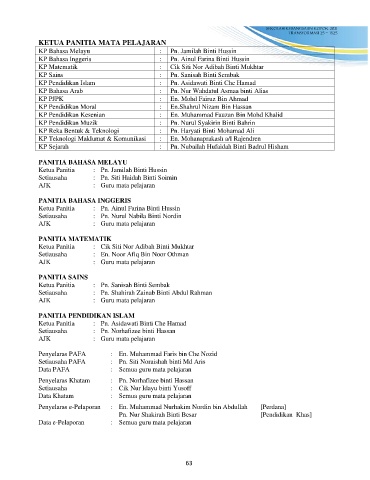 Ketua Panitia : Pn. Jamilah Binti Hussin