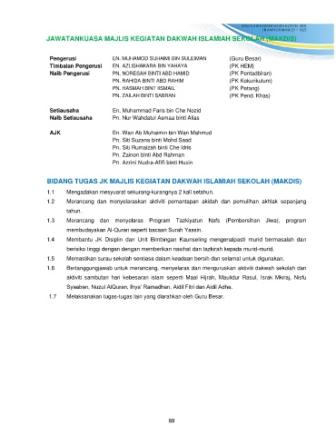 BIDANG TUGAS JK MAJLIS KEGIATAN DAKWAH ISLAMIAH SEKOLAH (MAKDIS)