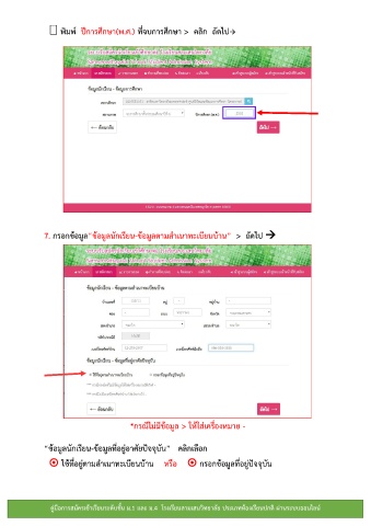 7. กรอกข้อมูล“ข้อมูลนักเรียน-ข้อมูลตามส่าเนาทะเบียนบ้าน” > ถัดไป
