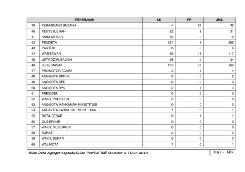 Buku Data Agregat Kependudukan Provinsi Bali Semester 2 Tahun 2019 Hal. 104