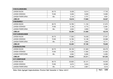 Buku Data Agregat Kependudukan Provinsi Bali Semester 2 Tahun 2019 Hal. 108