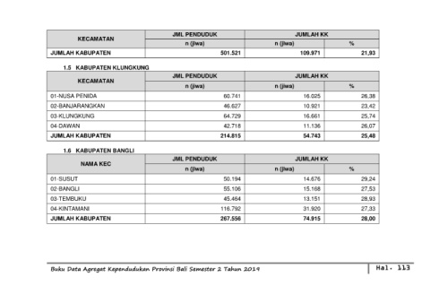 Buku Data Agregat Kependudukan Provinsi Bali Semester 2 Tahun 2019 Hal. 113