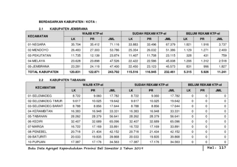 Buku Data Agregat Kependudukan Provinsi Bali Semester 2 Tahun 2019 Hal. 117