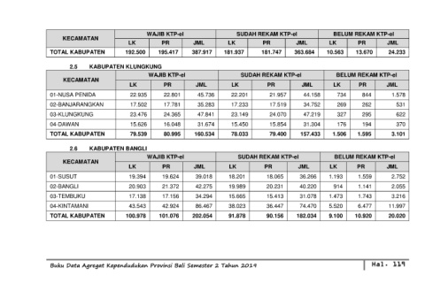 Buku Data Agregat Kependudukan Provinsi Bali Semester 2 Tahun 2019 Hal. 119