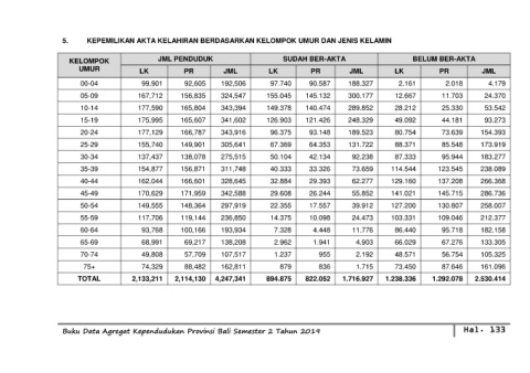 5. KEPEMILIKAN AKTA KELAHIRAN BERDASARKAN KELOMPOK UMUR DAN JENIS KELAMIN