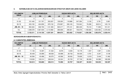 Buku Data Agregat Kependudukan Provinsi Bali Semester 2 Tahun 2019 Hal. 143