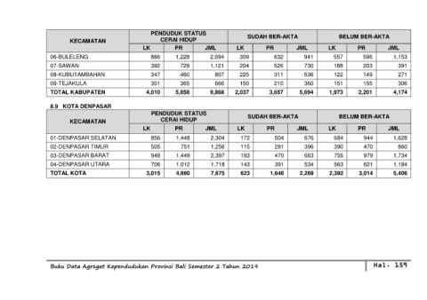 Buku Data Agregat Kependudukan Provinsi Bali Semester 2 Tahun 2019 Hal. 159