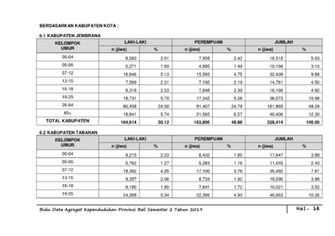 Buku Data Agregat Kependudukan Provinsi Bali Semester 2 Tahun 2019 Hal. 18