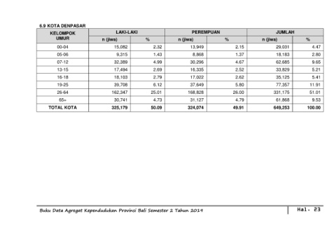 Buku Data Agregat Kependudukan Provinsi Bali Semester 2 Tahun 2019 Hal. 23