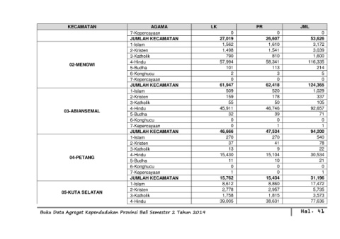 Buku Data Agregat Kependudukan Provinsi Bali Semester 2 Tahun 2019 Hal. 41