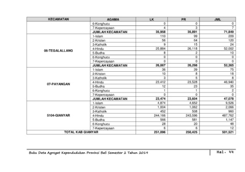 Buku Data Agregat Kependudukan Provinsi Bali Semester 2 Tahun 2019 Hal. 44