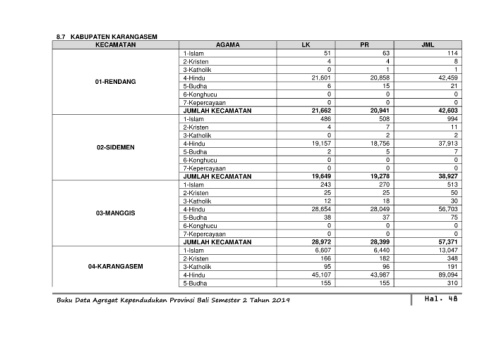 Buku Data Agregat Kependudukan Provinsi Bali Semester 2 Tahun 2019 Hal. 48