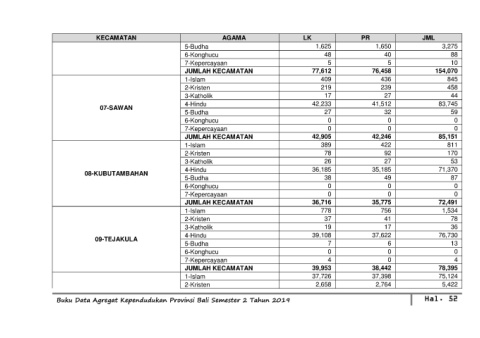 Buku Data Agregat Kependudukan Provinsi Bali Semester 2 Tahun 2019 Hal. 52