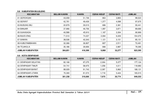 Buku Data Agregat Kependudukan Provinsi Bali Semester 2 Tahun 2019 Hal. 59