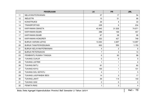 Buku Data Agregat Kependudukan Provinsi Bali Semester 2 Tahun 2019 Hal. 73