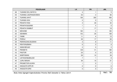 Buku Data Agregat Kependudukan Provinsi Bali Semester 2 Tahun 2019 Hal. 78
