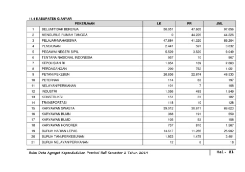 Buku Data Agregat Kependudukan Provinsi Bali Semester 2 Tahun 2019 Hal. 81