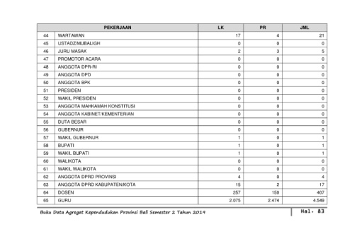 Buku Data Agregat Kependudukan Provinsi Bali Semester 2 Tahun 2019 Hal. 83