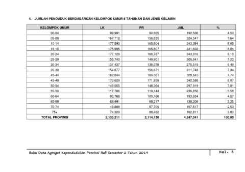 Buku Data Agregat Kependudukan Provinsi Bali Semester 2 Tahun 2019 Hal. 8