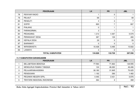 Buku Data Agregat Kependudukan Provinsi Bali Semester 2 Tahun 2019 Hal. 93