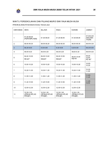 WAKTU PERSEKOLAHAN DAN PULANG MURID SMK RAJA MUDA MUSA