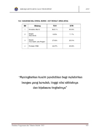 15.0 SASARAN HAL EHWAL MURID : KEY RESULT AREA (KRA)