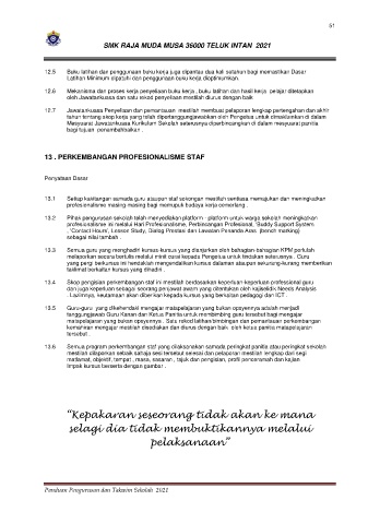 13.1 Setiap kakitangan samada guru ataupun staf sokongan mestilah sentiasa memajukan dan meningkatkan