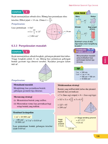 6.3.2 Luas permukaan sfera (i) Menentukan bentuk yang terlibat. = 5(5 × 5) + 4 � × 5 × 6.5�