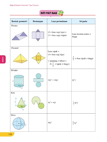 BAB 6 = (panjang × lebar) + 3 × luas tapak × tinggi 6. Menerbitkan rumus isi padu prisma dan silinder, dan seterusnya membentuk BAB 6