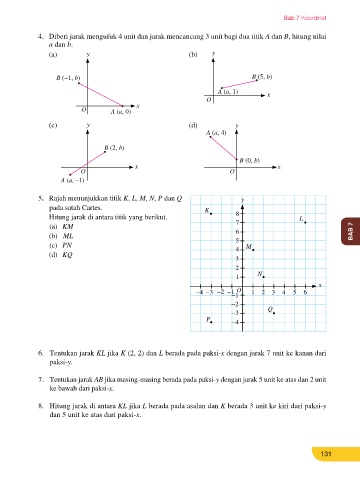(a) (1, 3) dan (1, 7) 8. Hitung jarak di antara KL jika L berada pada asalan dan K berada 3 unit ke kiri dari paksi-y