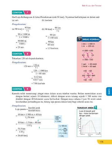 semula ke bandar A. Dia sampai di bandar A pada pukul 12:15 tengah hari. Hitung laju CONTOH 8 km m cm