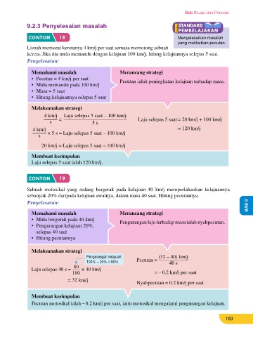 BAB 9 Samy memandu dengan kelajuan 70 km/j. Dia menambah kelajuan keretanya kepada 100 km/j Penyelesaian: BAB 9
