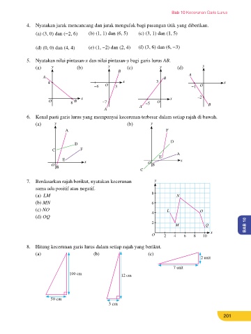 1. Tentukan jarak mencancang dan jarak mengufuk bagi titik P dan titik Q yang berikut. 7. Berdasarkan rajah berikut, nyatakan kecerunan y