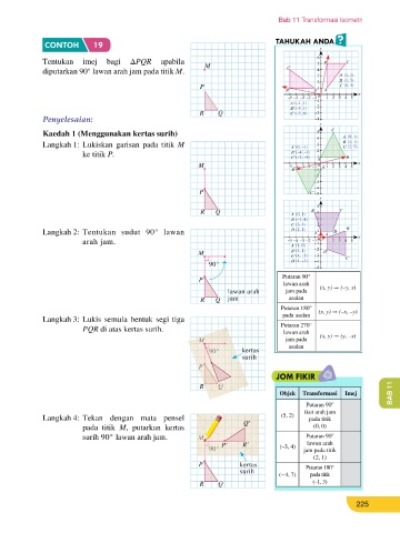 (c) Jarak semua titik imej ke pusat putaran adalah sama dengan jarak objek ke pusat putaran. diputarkan 90° lawan arah jam pada titik M. 4 3 A (1, 1)