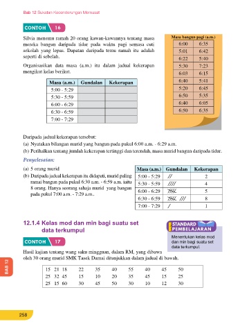 ramai bangun pada pukul 6:30 a.m. - 6:59 a.m. iaitu 5:30 - 5:59 4 Setelah data itu diorganisasikan, kita akan mengetahui kelas mod daripada nilai kekerapan yang