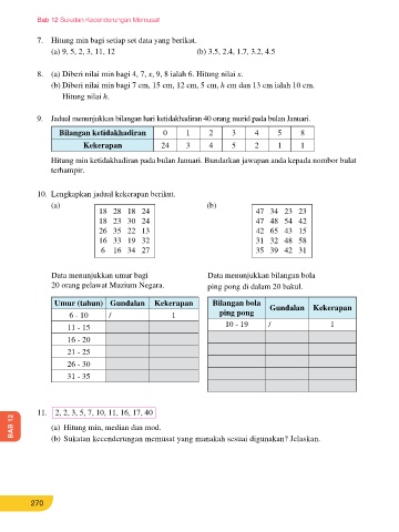 Umur (tahun) Gundalan Kekerapan Bilangan bola Gundalan Kekerapan 14. Sukatan kecenderungan memusat yang manakah yang sesuai digunakan untuk menerangkan