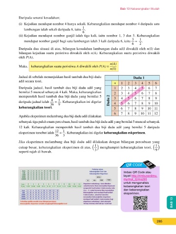 K (I, K) mendapat ‘gambar’ sebanyak tiga puluh enam percubaan, hasil tambah dua biji dadu adil yang bernilai 5 muncul sebanyak