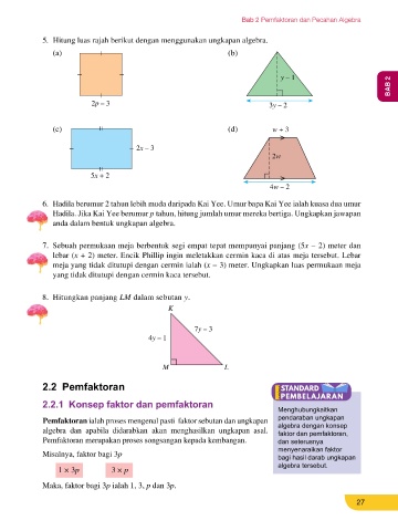 (d) (3p − 2)(4p − 1) (e) (3r − 2)(4r − 1) (f) (2r + s)(4r − 3s) 2.2.1 Konsep faktor dan pemfaktoran