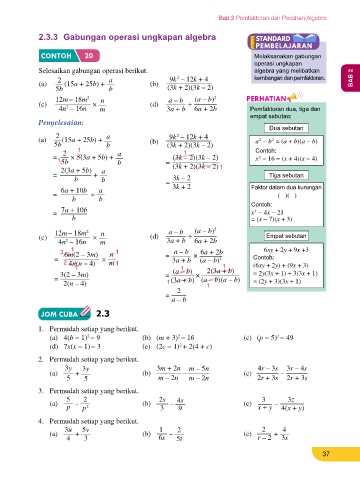 2.3.2 Pendaraban dan pembahagian ungkapan 2.3.3 Gabungan operasi ungkapan algebra