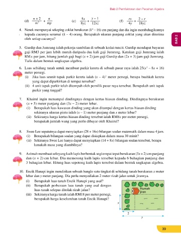 6. Permudah. 2k – 1 2 kepada cucunya seramai (k – 4) orang. Berapakah ukuran panjang coklat yang akan diterima