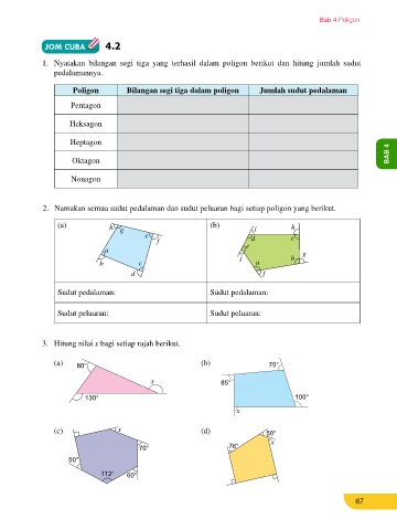 BAB 4 Hitung bilangan sisi sebuah poligon sekata berikut apabila diberi 180° − sudut peluaran Oktagon BAB 4