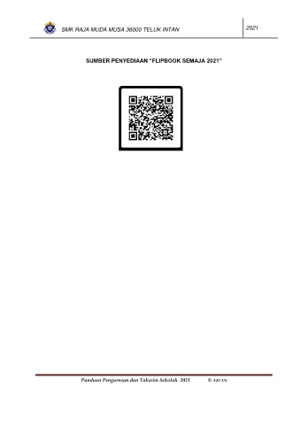 SMK RAJA MUDA MUSA 36000 TELUK INTAN 2021 SUMBER PENYEDIAAN “FLIPBOOK SEMAJA 2021” Panduan Pengurusan dan Takwim Sekolah 2021 © AZLAN