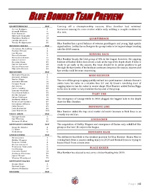 QUARTERBACKS DLF Coming off a championship season, Blue Bomber had minimal