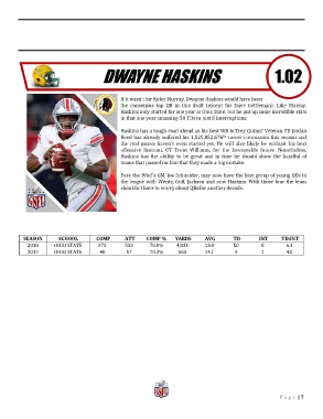 SEASON SCHOOL COMP ATT COMP % YARDS AVG TD INT TD:INT 2018 OHIO STATE 373 533 70.0% 4,831 13.0 50 8 6.3 2017 OHIO STATE 40 57 70.2% 565 14.1 4 1 4.0 P a g e | 7