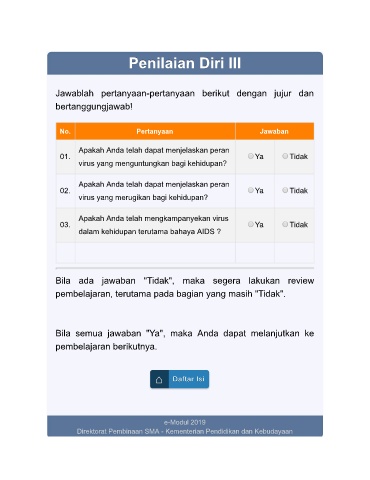 pembelajaran, terutama pada bagian yang masih "Tidak".