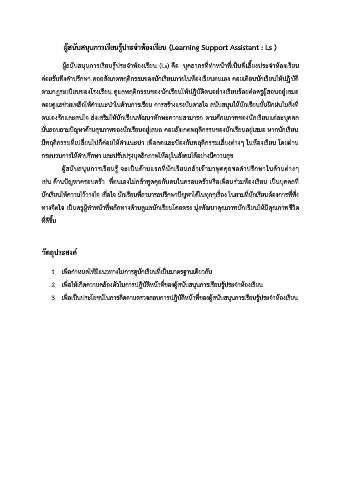 ผู้สนับสนุนการเรียนรู้ประจ าห้องเรียน (Learning Support Assistant : Ls )