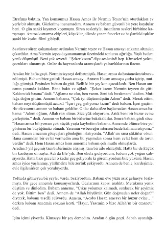 Etrafıma baktım. Yan komşumuz Hasan Amca ile Nermin Teyze’nin oturdukları ev