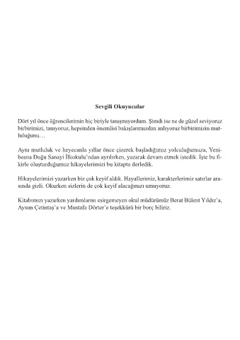 Kitabımızı yazarken yardımlarını esirgemeyen okul müdürümüz Berat Bülent Yıldız’a,
